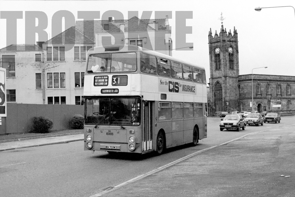 35mm Black and White Negative Greater Manchester PTE Leyland FE30AGR 6985 DWH701W in 1980s
